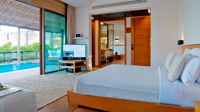 Located in the heart of historic Hua Hin, Thailand, the laid-back Putahracsa retreat shines a brilliant white against the golden beach and if you love palm trees, there are tons of them to shade this amazing oasis! Each of the 59 rooms and villas offer a stylish and relaxing design of beige and white with free Wi-Fi, flat screen TVs, a fridge, minibar, some surrounded by the pool on three sides, others share a private pool and the most luxurious of all have their own Jacuzzi, pool and private butler..something here for all tastes!