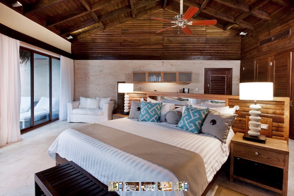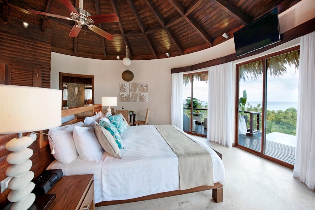 Your private suite at Casa Bonita offers luxurious white linens, wicker furniture and views of both the ocean and the Sierra Barahuco Mountains…breathtaking to say the least! Each suite contains graphic art, private balconies, TV, DVD, wine coolers, private showers, minibar and organic Damana amenities.