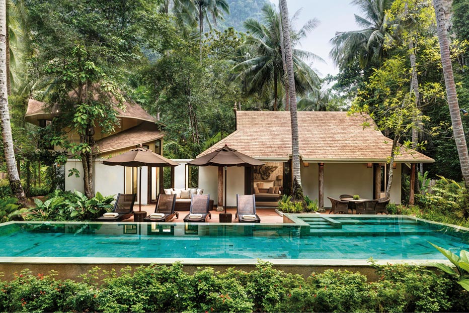 Formerly Indigo Pearl, the Slate Resort in beautiful Phuket, is the epitome of industrial chic, with lavish suites and pool villas by American designer, Bill Bensley. He took his inspiration of the local mining heritage and included lots of texture, soft lighting and deluxe amenities. There is an awesome spa, the Coqoon, and the cuisine here is excellent, as well as the personal service. There are 177 rooms at this resort and rates include buffet breakfast, fruit baskets and munchies provided for your private room.