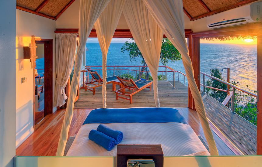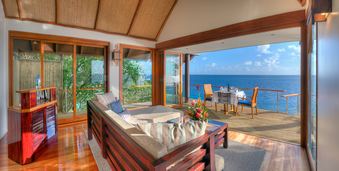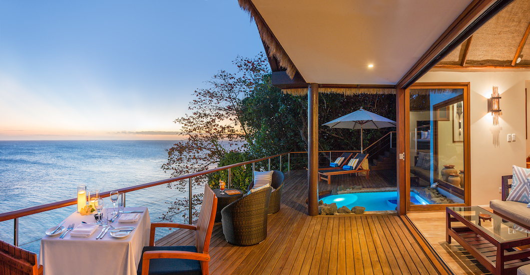Adults only, snow white beaches, crystal clear water and a laid back, casual atmosphere is what you will find when you arrive at the Royal Davui Island Resort in breathtaking Fiji! Scuba diving, beachcombing and sunbathing are the norm at this private island getaway and it’s bar keeps the tropical drinks flowing. There are 15 suites on this beautiful island and your rates include all meals, sunset canapes, nightly entertainment, weekly beach barbecue, watersports and many activities. You can relax in the spa, get your gear at the dive shop or shop in the boutique.