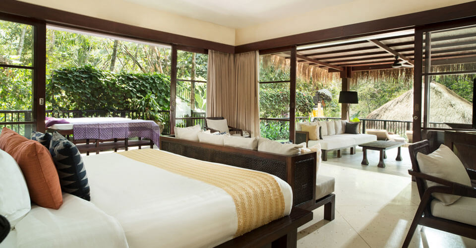 If that isn’t saying enough about this awesome resort, there are 44 private villas to choose from. Each suite looks out over the island’s natural beauty and is decorated in the new and old style of Balinese decor. Handcrafted furniture, fine fabrics, spectacular bathroom, and airy dining areas keep the open jungle feel in mind in a choice from 9 room styles. Enjoy plush beds, bathrobes & slippers, infinity pool access, fully serviced kitchen, terrazzo bath tubs, premium toiletries, mini bar, coffee & tea, safe, and many more amenities.