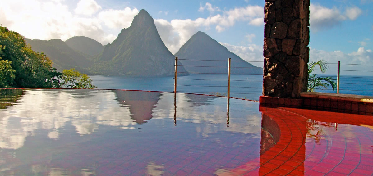 Today we take you back to the lush and romantic island of St. Lucia. This mountainous island is ranked as one of the world’s top honeymoon destinations, and just one visit lets you know why. Jade Mountain Resort is a magnificent place to stay while you vacation in St. Lucia. The mountain views are majestic, the beaches are pure, white sand, and the resort is mesmerizing. The layout of the rooms express large, open spaces where bedroom, living area, and private infinity pool meet, and combine together into platforms that float above nature like a stage. From your room, you can fully embrace the Piton Mountains, and the refreshing Caribbean Sea.