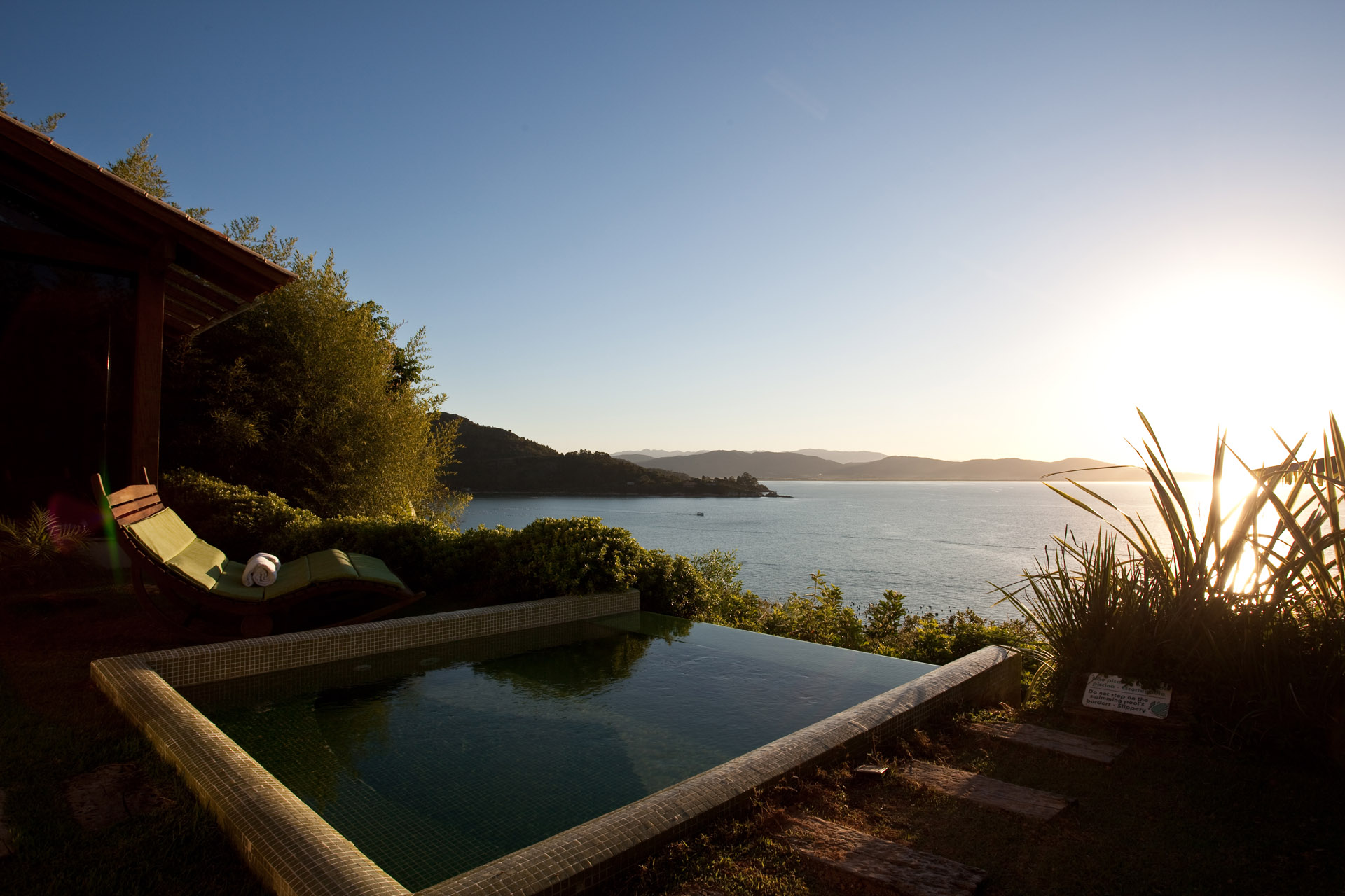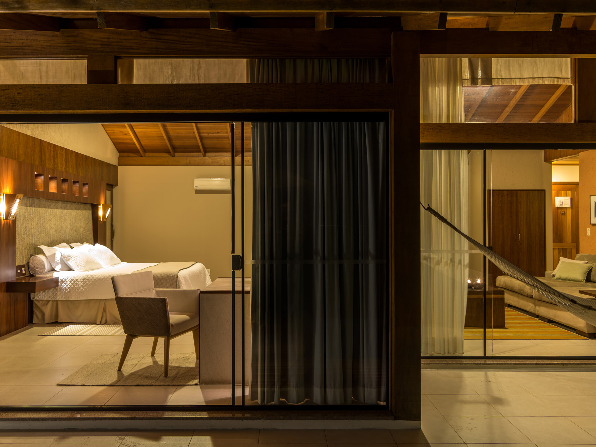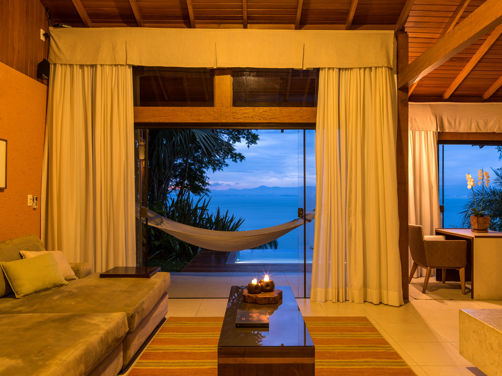 The 25 sophisticated bungalows offered are PERFECT for a romantic vacation! In the 6 styles of bungalows and villas here, you experience modern comfort, with all the amenities you need to provide a relaxing and and unique experience. The bungalows are designed in terra-cotta tones that blend against the lush landscape with wood, and glass decor for a welcoming stay. In the Arvaredo, Anhatomirim, Esmeralda, and Da Vila style bungalows, guests enjoy sea views, mini bar, King Size bed, wine cellar, safe, Egyptian linens, coffee machine, split air conditioning, cable television, and more creature comforts. Some bungalows even feature an in-bath Spa.