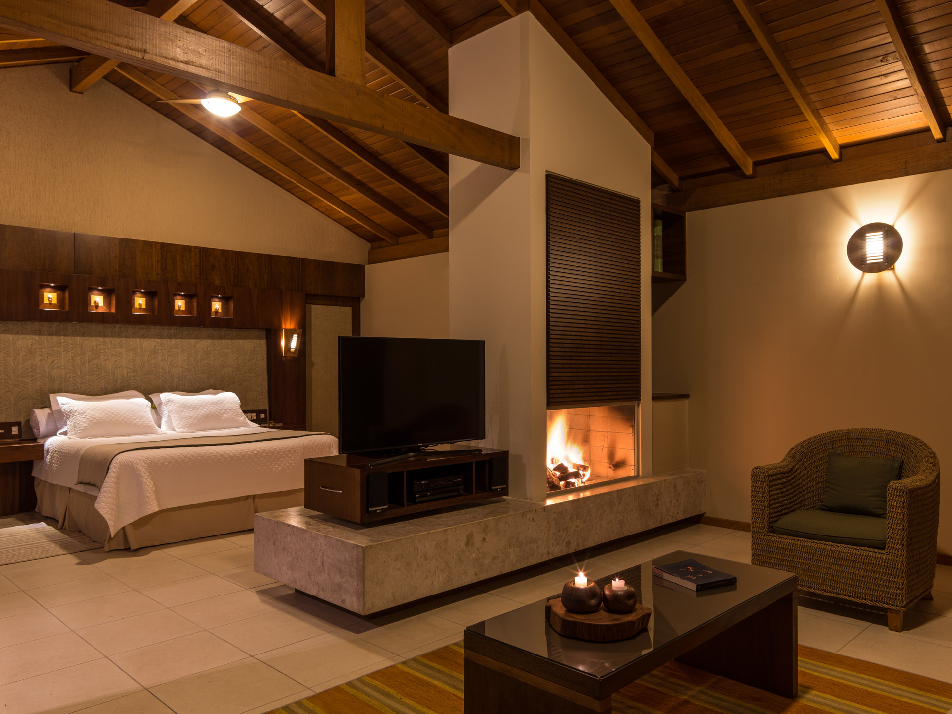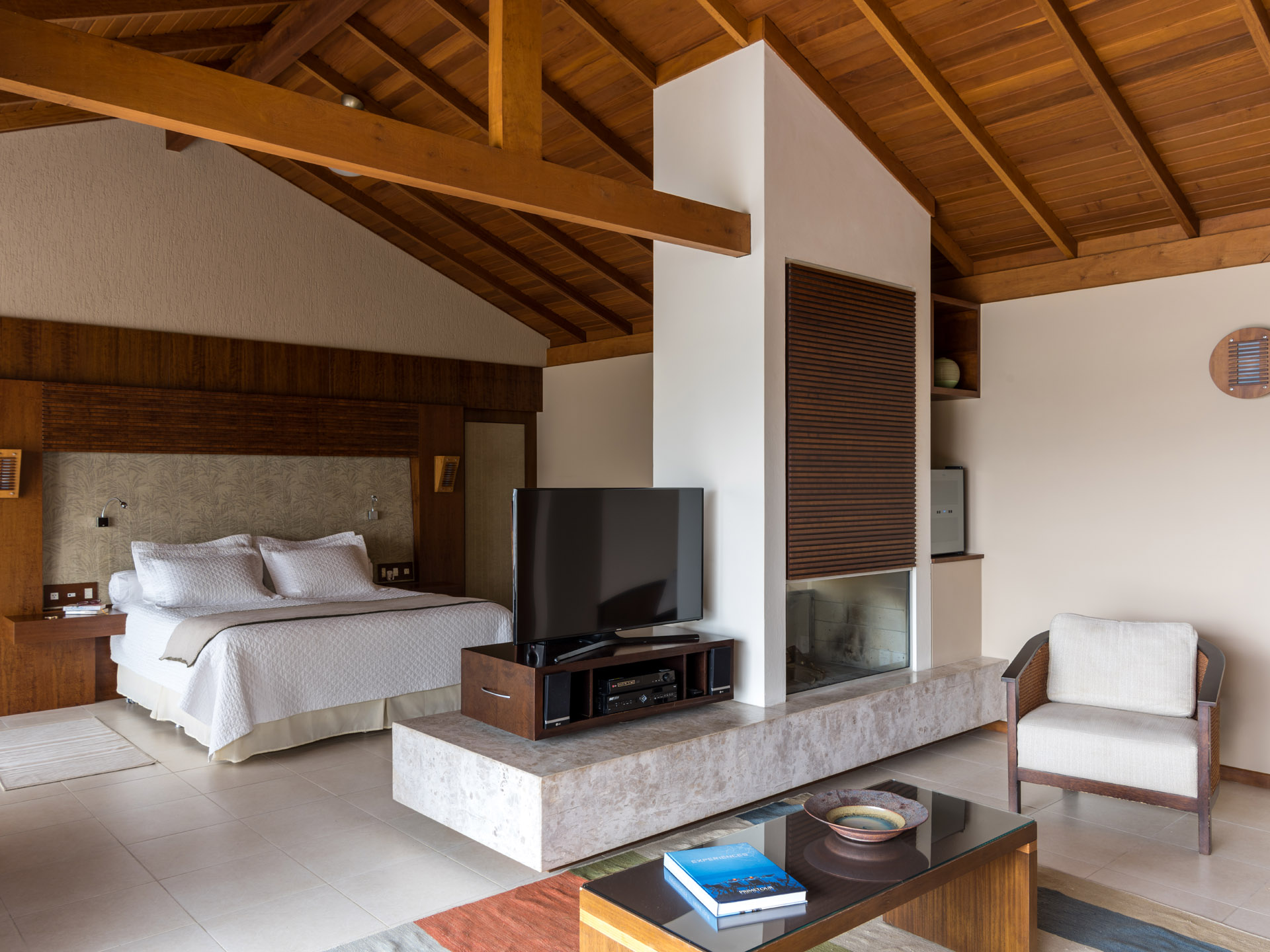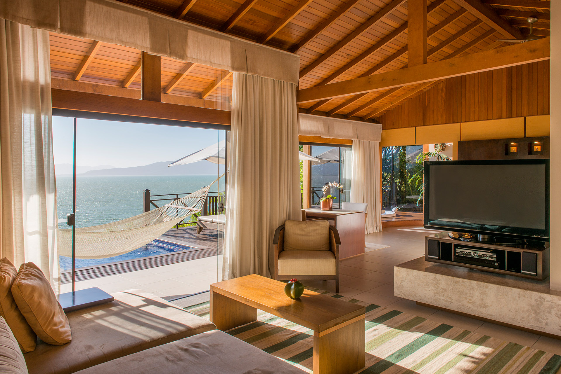 The 25 sophisticated bungalows offered are PERFECT for a romantic vacation! In the 6 styles of bungalows and villas here, you experience modern comfort, with all the amenities you need to provide a relaxing and and unique experience. The bungalows are designed in terra-cotta tones that blend against the lush landscape with wood, and glass decor for a welcoming stay. In the Arvaredo, Anhatomirim, Esmeralda, and Da Vila style bungalows, guests enjoy sea views, mini bar, King Size bed, wine cellar, safe, Egyptian linens, coffee machine, split air conditioning, cable television, and more creature comforts. Some bungalows even feature an in-bath Spa.