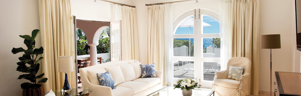 The rooms at La Samanna are spacious and elegant, some with Jacuzzi, separate living and dining spaces but all rooms have flatscreen TVs, DVD players, stocked mini bar and balconies. Rooms include Deluxe Ocean View Rooms, Suites, Three Bedroom Cottages, Specialty Suites, and Villas. There is also Wi-Fi in public areas, free breakfast, concierge service, laundry service, beauty salon and business services. Both pools also have bars and poolside drink service.