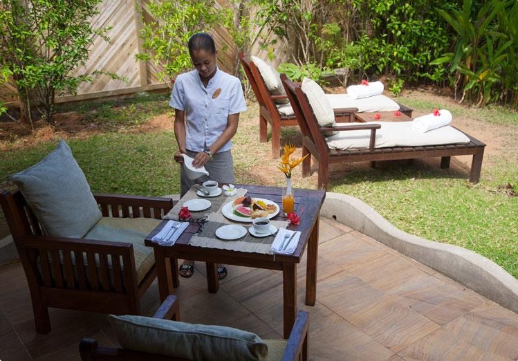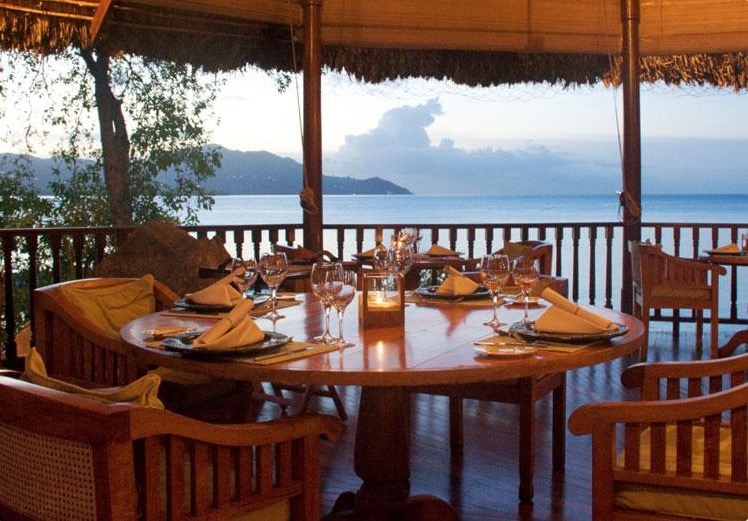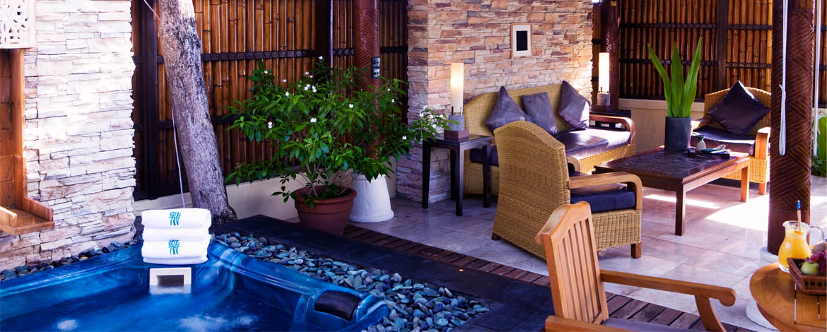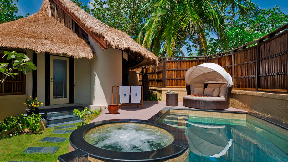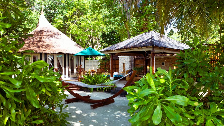 At the Banyan Tree Vabbinfaru, guests choose from Ocean Front, Beach Front, and Spa Sanctuary Villas. There are only 48 villas here, and each has all the amenities you expect, with added King-size teak wood four-poster bed, outdoor and indoor showers, pillow menu, and private pool with adjoining jet pool. When you are not enjoying your villa, you can unwind with a cocktail at the Naiboli Bar, get pampered and rejuvenated at the Banyan Tree Spa, go sailing on the classic yacht, Banyan Velaa, or enjoy the exquisite, eclectic cuisine at Ilaafathi or candlelit dinners on the beach.