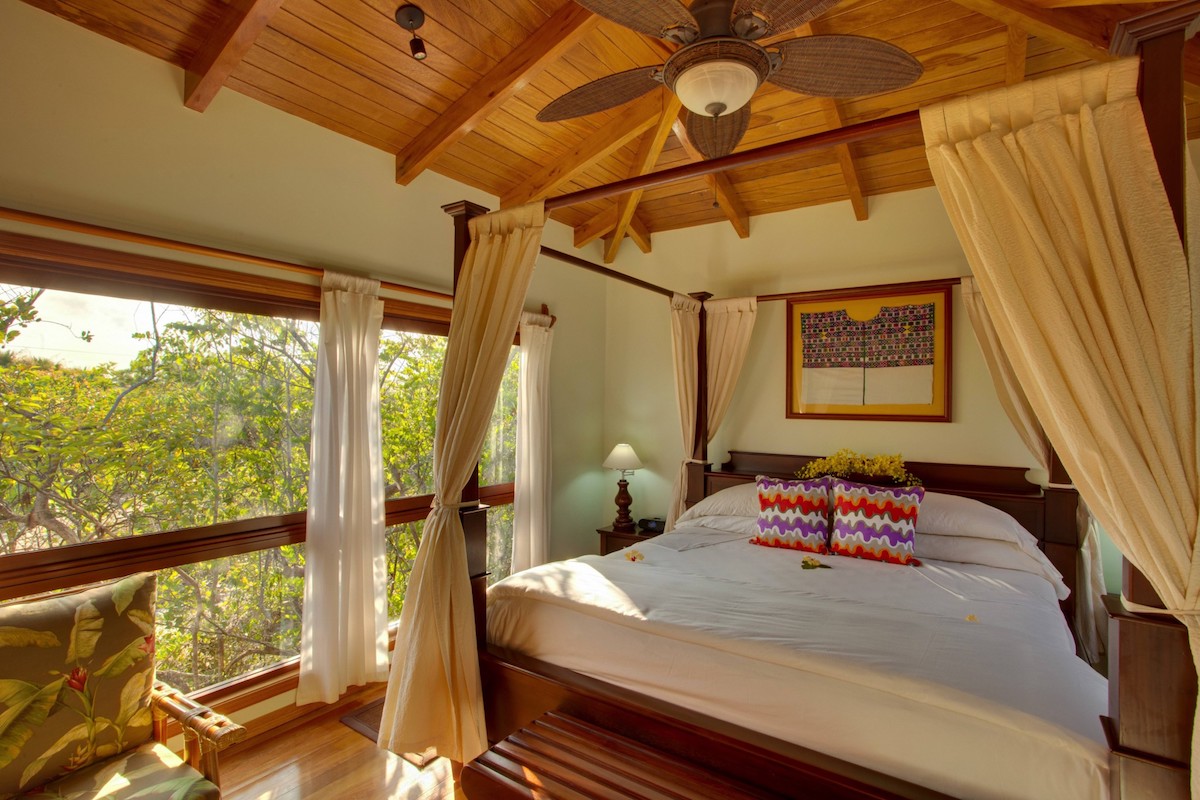 The spacious and AC cooled rooms at the Hamanasi have hardwood furnishings that are made on site. Local art, sleeper sofas, private porches, beautifully tiled bathrooms, plush towels, and fine linens. The mattresses are said to be the most comfortable around, and bottled water is provided to guests who are greeted with a smile, and exceptional service. More amenities include stocked mini bar, coffee maker, large bathroom, double vanity and his+her robes.