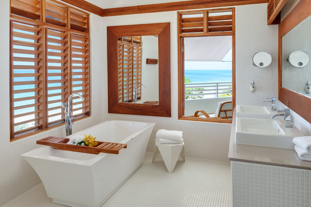 Swept Away is located on Seven Mile Beach, and is the largest Couples brand resort. It is 19 acres of comfortable digs, a large fitness complex, lap pool, and air conditioned squash and racquetball courts. Over all there are 312 suites, 6 restaurants, 8 bars, 3 pools, 5 Jacuzzis, and Golf. The most luxurious room here is the Premier Beachfront Suite that shares a Caribbean style with comfortable seating, floor to ceiling windows, French doors, outdoor living and space near the beach that is perfect for two.
