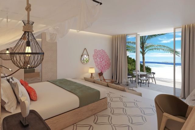 At Sun Aqua Iru Veli Resort, renovated and reopened in December 2018, you will be in the middle of all this glory on a private guest only island. Your beach side or over-water suite will have amazing ocean views, and a private freshwater pool. Each suite also has chic interiors, and comfort in the form of luxurious bathrooms, decadent spa products, comfy beds, and plush linens. There are also more than 10 room configurations to suit your fancy.