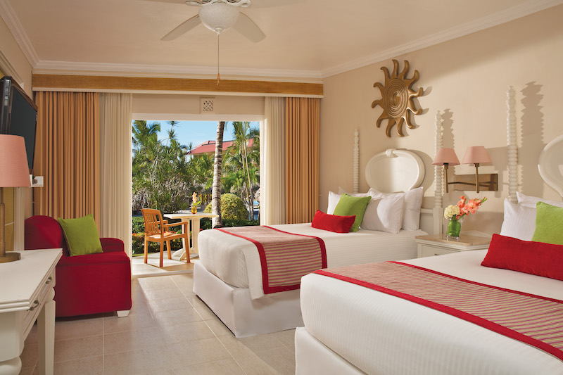 The rooms at Dreams Punta Cana are filled with amenities and offer the luxury and comfort you would expect at a resort like this. Most rooms offer breathtaking ocean views and others stunning views of the jungle. There are 620 non-smoking rooms and suites that are all airy and bright. The Preferred Club Master Two-Bedroom Suite is the most luxe of these rooms and has a tropical or partial ocean view. It has a spacious living room, a king and 2 twin beds, private terrace, with space for 3 adults, and two children.