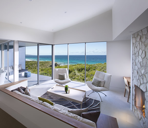 Five floor plans include the Flinders Suite, Ocean Retreat, Ocean Premium, Remarkable Suite and the Osprey Pavilion. We recommend the 120m² Remarkable Suite that has floor to ceiling windows for exceptional views of the surrounding sea and peerless sky. This modern suite is perfect for two, or three. It has an EcoSmart Fireplace, homemade timber bathtub, and a large ensuite bathroom. To enjoy the Southern Ocean views, there is a large outdoor living area with day lounger, and private spa bath.