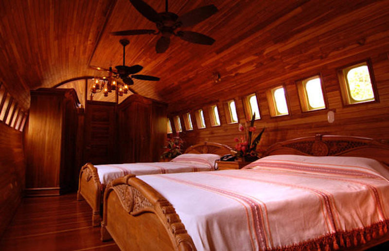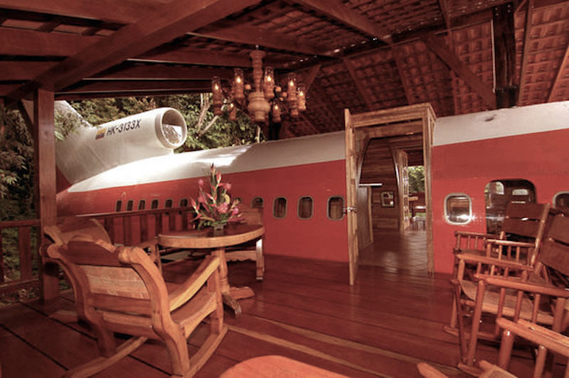 727 Fuselage Home – Last, and certainly not least, we head far south to Costa Rica. More specifically Quepos, CR that hosts the 727 Fuselage Home. It is built from a 1965 Boeing 727 airplane that was flipped into a luxury hotel suite with rich wood finishing. The suite is supported by a stone pedestal that lifts it over the trees for views to the beach and the ocean beyond. Modern amenities include cable TV, Wi-Fi, hair dryers, refrigerator, kitchenette, Balinese style furniture, and private deck. There are also 3 pools on the property that ensure you are always close to a dip in the cool water.