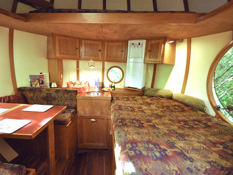 Free Spirit Spheres – Let’s go a bit further north to Canada to Free Spirit Spheres that are possibly the most unique accommodation anywhere. These spherical rooms are suspended above the Pacific Northwest forest of Vancouver Island, British Columbia and are available for 1 day or weeklong lodging. Each sphere sleeps up to three and there are 4 baths on the property. This is a perfect getaway for nature loving couples who enjoy minimalism. You will be comfortable inside, with central heating, sink, mini fridge, counters, a settee, cupboards, dishes, filtered water, coffee/tea maker, and speaker system. We cannot forget the skylight, neither will you.