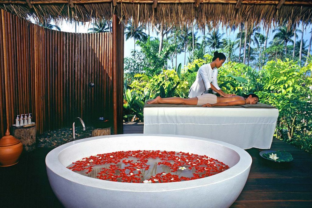 Sarojin lies on a 7 mile white sand beach with 56 luxury rooms in five styles, and an additional 7 separate two-story residential style rooms as well. From the Garden, Pool, Jacuzzi, Spa, the Pool House, we chose the Spa Suite. This heavenly room is set for those who came to relax.