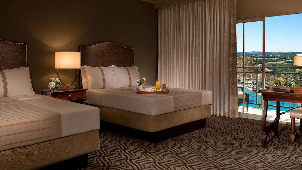 There are six styles of accommodation here including room, villas, suites, and an entire adults only floor. We just love the Deluxe style rooms. Both the Deluxe King, and Deluxe Queen rooms have impressive views of resort, city, or Hill Country views. Each comes with a choice of balconies, Wi-Fi, HDTV, Smartphone dock, coffeemaker, mini fridge, rain shower head, robes, and other amenities that make you feel at home.