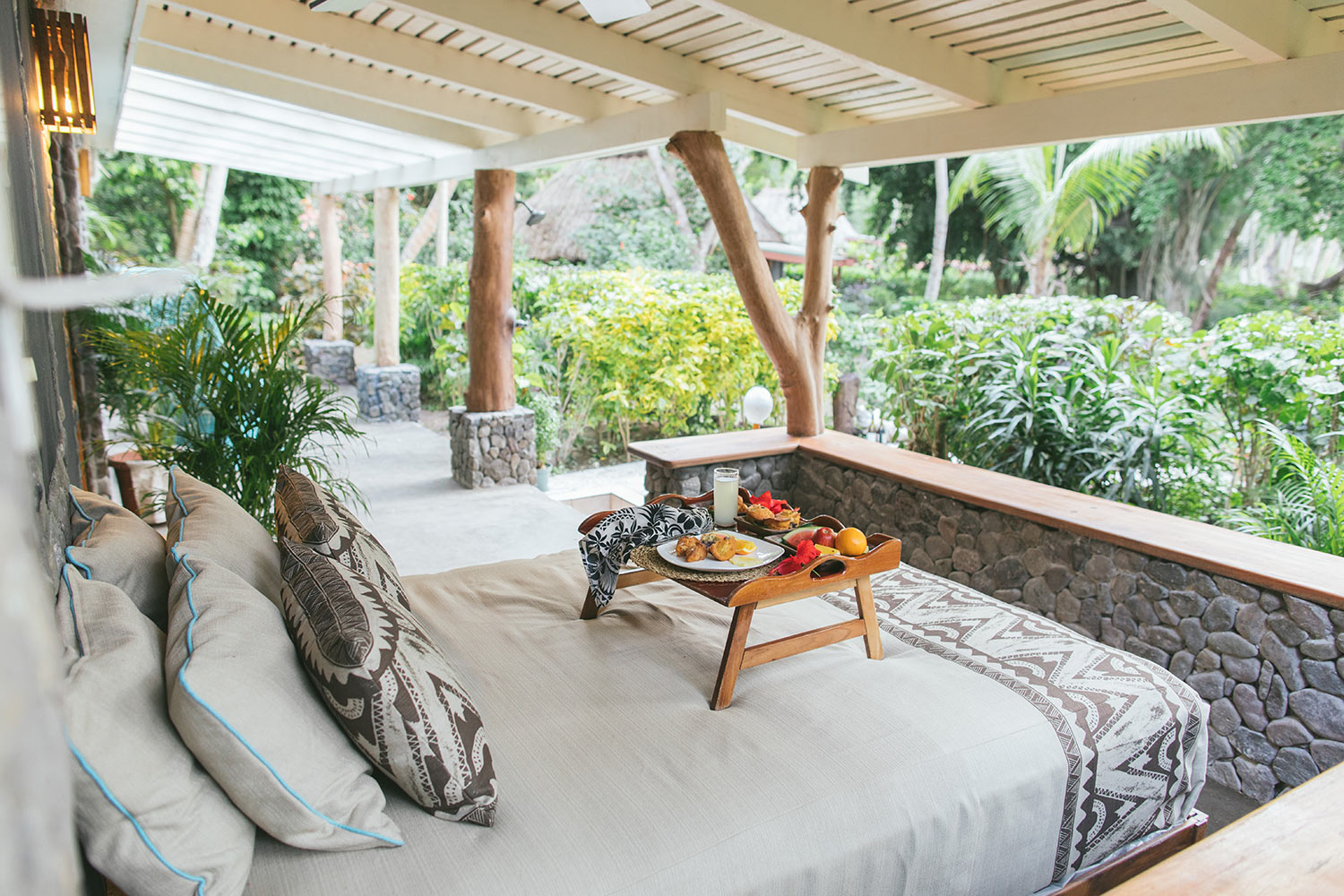 Vonu Point is the most sought after villa at Turtle Island. It is elevated above the other villas for sweeping views of the pristine beach, nearby islands, and the sea. It has king-sized bed, separate dressing room, hardwood floors, and a queen sized outdoor lounger, and hammock that lets you lay back and enjoy 300° views of Turtle Island.