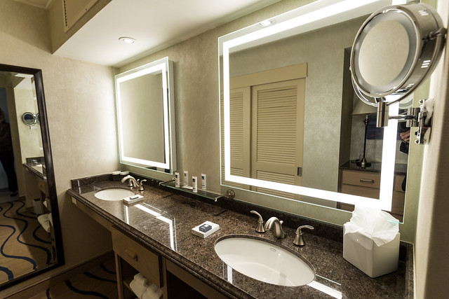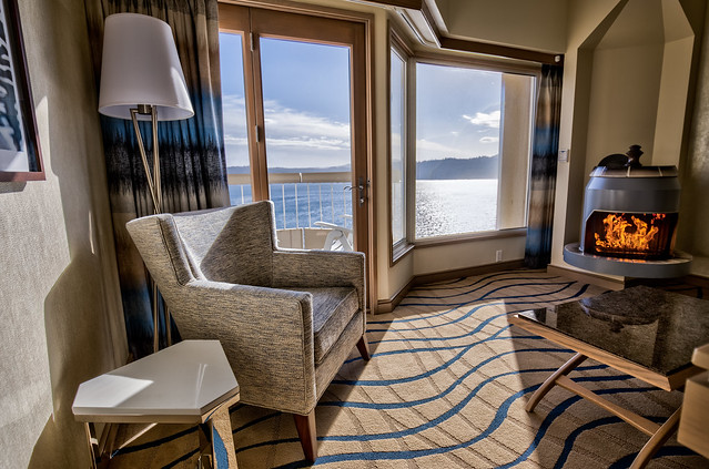 This invigorating resort has 6 room styles including the Jaeger Suite that is an 18th floor room with 1500 square feet (139.35 m²) of roaming room. It has king bed, large soaking tub, in-mirror TV in the bath, separate living room, fireplace, wet bar, and two large balconies with amazing views.