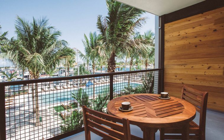 The rooms feature oversized private balconies, water views from each room, local artwork, premium bath amenities, large flat screen TVs, Wi-Fi, refrigerator, coffeemaker, work desk, and climate control. Furnishings here are contemporary, and comfortable, and you can really sink into the beds. Showers here are large, and some rooms even have open air outdoor showers, perfect for a refresher after the nifty fitness room at the Perry Hotel.