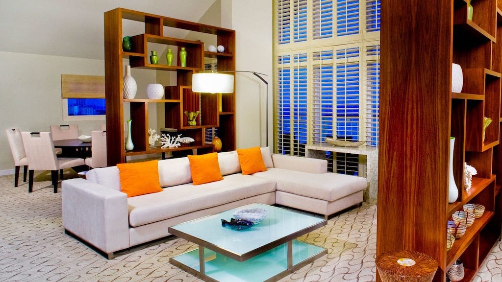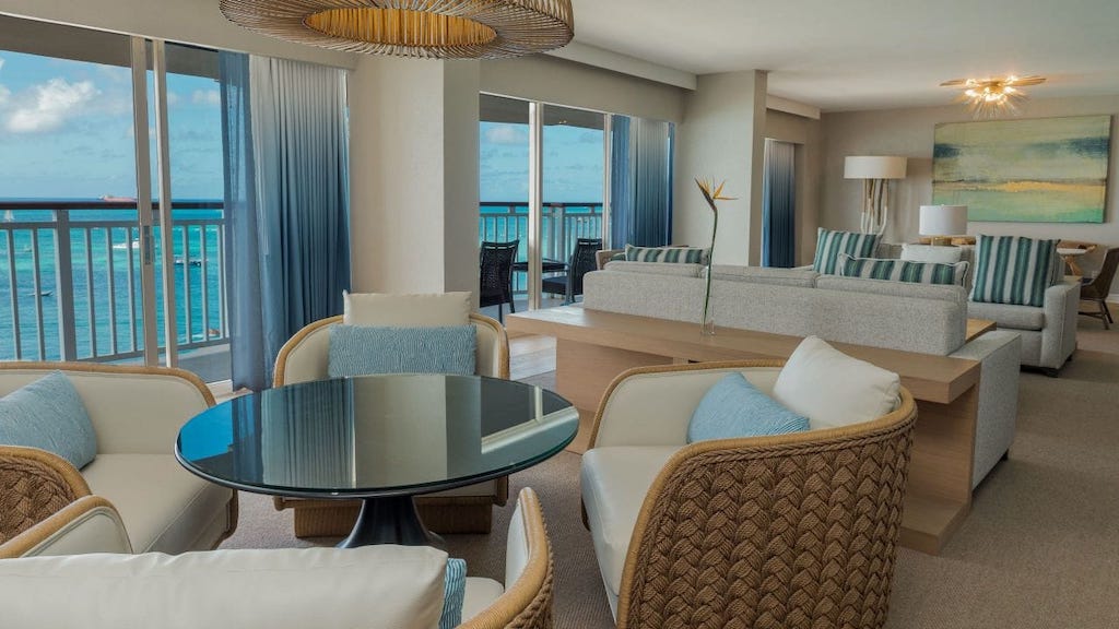 This is a timelessly designed 1850 square foot (ca. 172 m²) suite that comes with one, two, or three bedrooms. This room is fully equipped with an 8 person conference table, full bath with stall, and steam showers. separate bathtub, and a furnished balcony that runs the length of the entire indoor living area with incomparable views of the Caribbean.