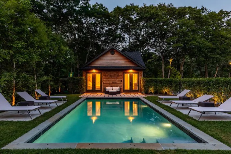 Nearby boutiques, galleries, and dining give you a breather outside the home, and the Shinnecock Hills Golf Club that is 5 minutes away, lets you be sporty, as well as the nearby beaches that allow surfing, swimming, and sunbathing in the Atlantic, North Sea Beach, Meschutt Beach, and Cooper’s Beach. See this private home getaway in our gallery, and book for $2400 per night.