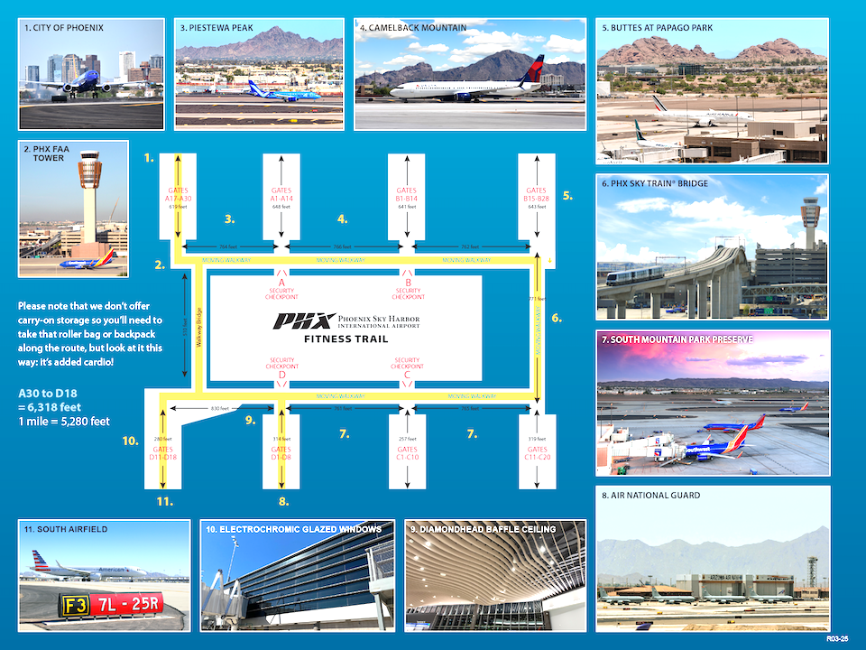 Phoenix Sky Harbor (PHX): The FitPHX program offers a 1-mile walking path through Terminal 4.