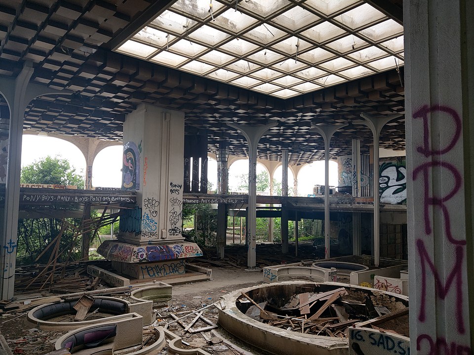 But politics, war, and poor financial planning led to its downfall. After the Yugoslav Wars in the 1990s, the property was abandoned. Today, it’s a favorite among urban explorers. Staircases lead to nowhere, trees burst through tile floors, and nature has painted over the marble with moss.
