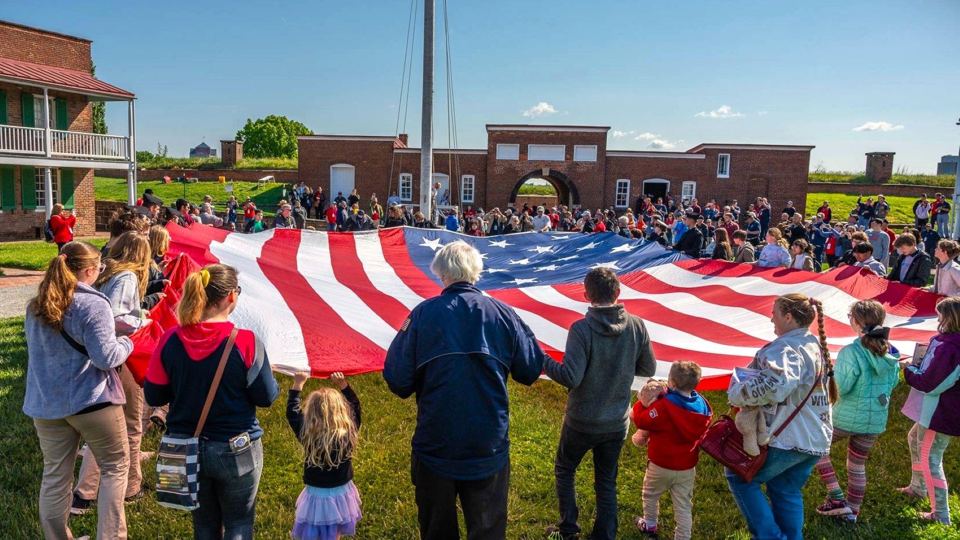 - Witness a flag-raising ceremony with a historically accurate replica.