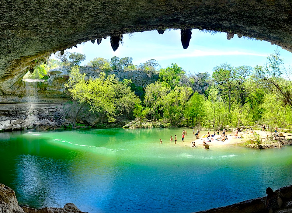 Texas brings the heat, but it also delivers with some of the country’s most iconic swimming holes. Near Austin, Hamilton Pool Preserve in Dripping Springs feels like an enchanted cave, complete with a 50-foot waterfall that spills into a jade-green pool.