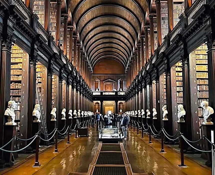 Few libraries capture the imagination like Trinity College’s Long Room. Stretching nearly 213 feet, this grand hall is lined with towering oak shelves filled with rare books. Marble busts of philosophers and writers add to the atmosphere of timeless wisdom.