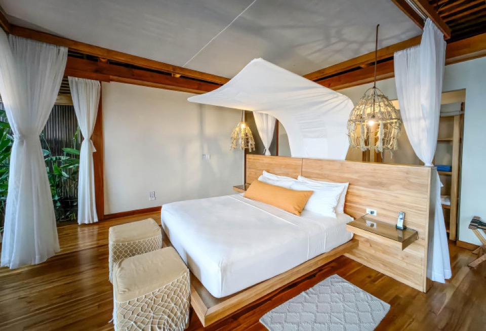 The on-site restaurant showcases fresh, locally sourced ingredients with dishes that highlight Costa Rican flavors and global influences. Guests can enjoy plant-based options, freshly caught seafood, and tropical fruits, all prepared with an eye toward sustainability. Dining on the open-air terrace allows for panoramic ocean views, turning each meal into a memorable experience.
