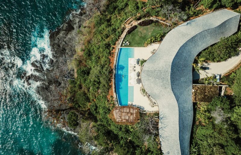 Visitors stay in a handful of private “Casitas,” designed to harmonize with the surrounding landscape. Each offers sweeping ocean views, open-air living areas, and elegant interiors inspired by natural textures and colors. The architecture allows sea breezes to cool spaces naturally, reducing the need for artificial air conditioning.
