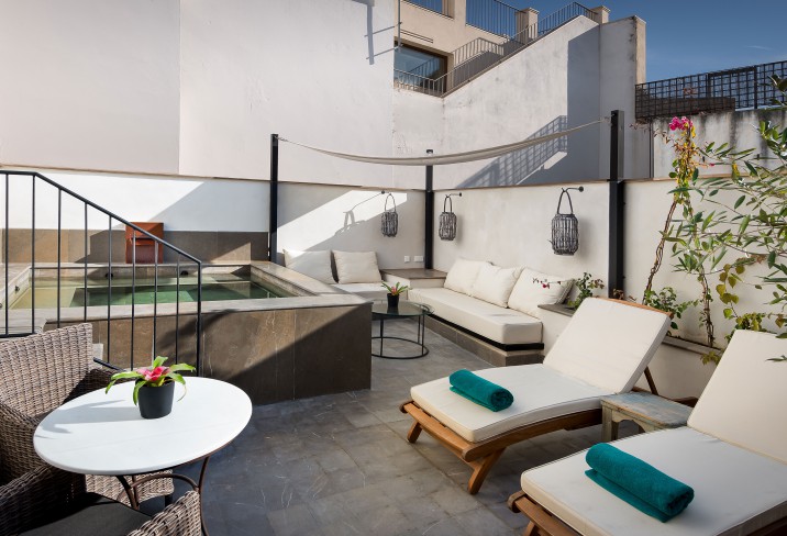 With a small plunge pool and lounge chairs, it’s the perfect spot to unwind after a day of exploring. Sipping a glass of Spanish wine while the bells of nearby churches ring is a memory that stays long after you’ve left.
