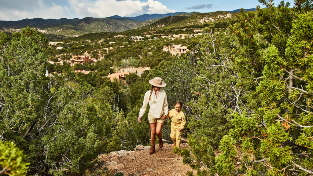 Trails surrounding the property offer clear winter light, peaceful scenery, and steady terrain. Families can take guided hikes that introduce regional history, wildlife tracks, and the cultural significance of the land. These outdoor experiences build appreciation for the natural setting that defines Bishop’s Lodge.